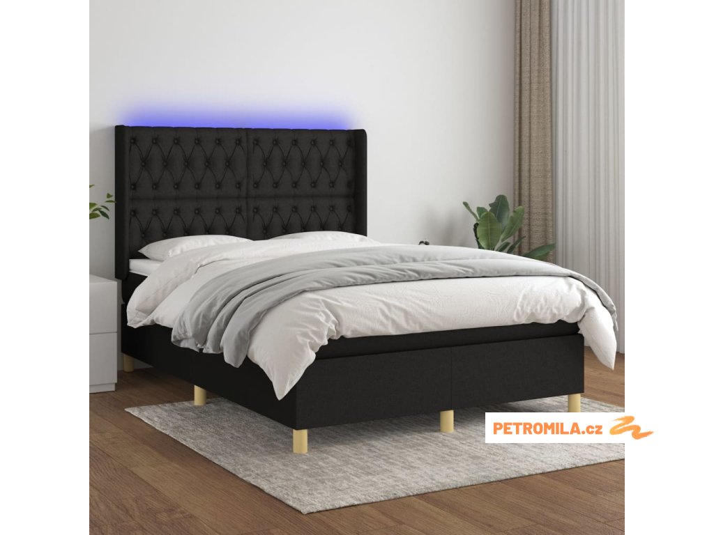 Box spring postel s matrací a LED černá 140x190 cm textil