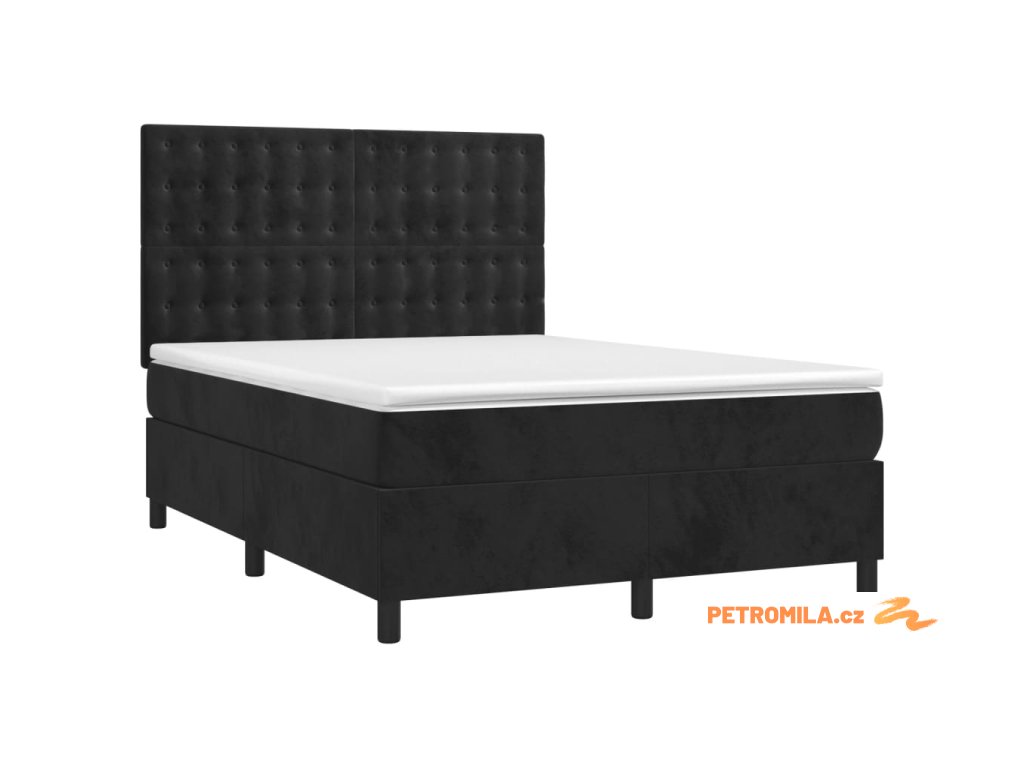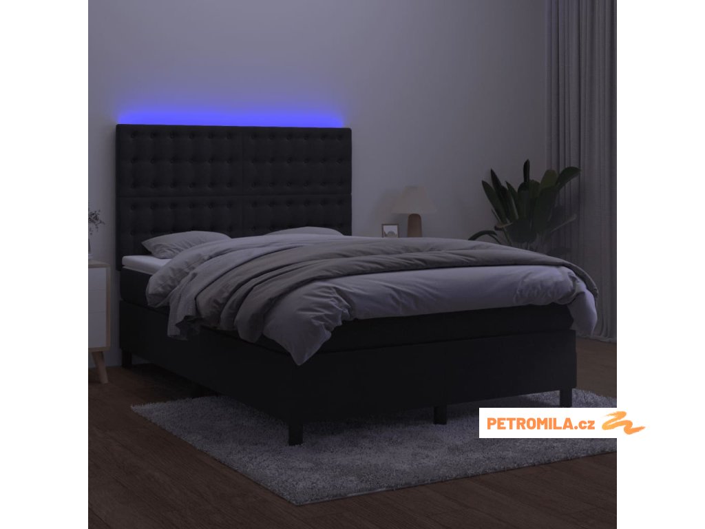 Box spring postel s matrací a LED černá 140x200 cm samet