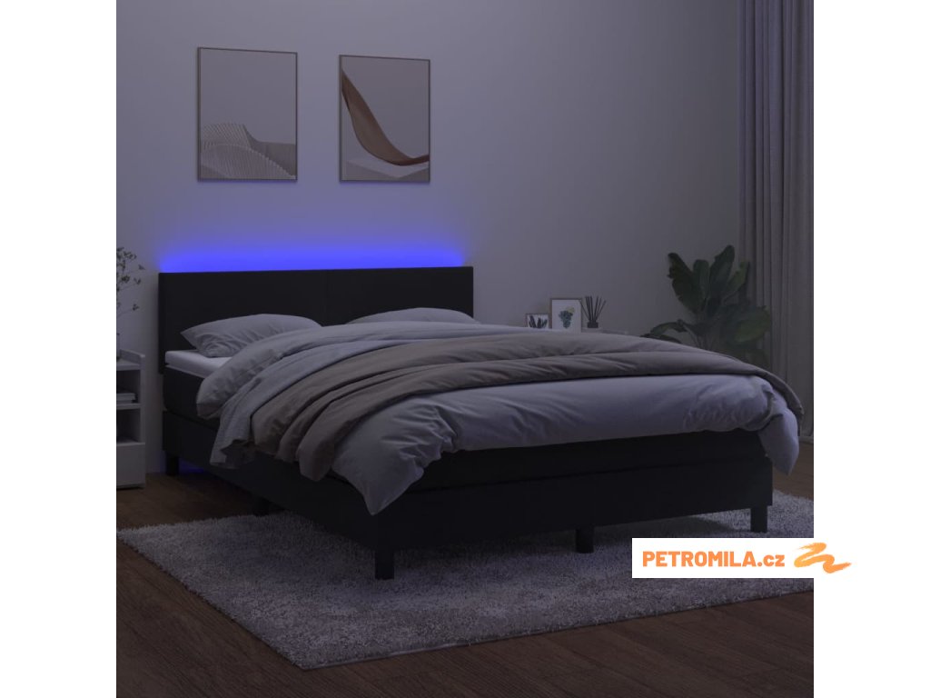 Box spring postel s matrací a LED černá 140x200 cm samet