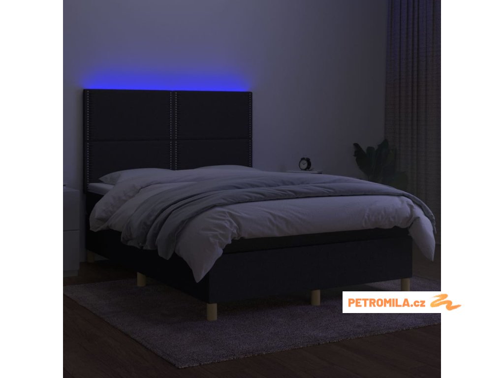 Box spring postel s matrací a LED černá 140x200 cm textil