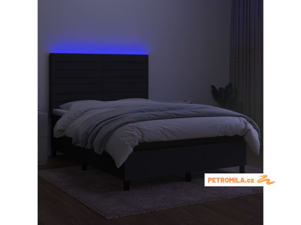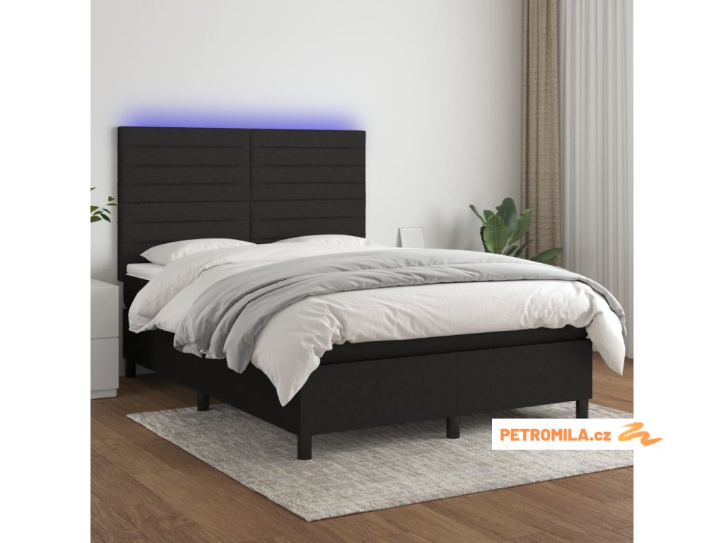 Box spring postel s matrací a LED černá 140x200 cm textil