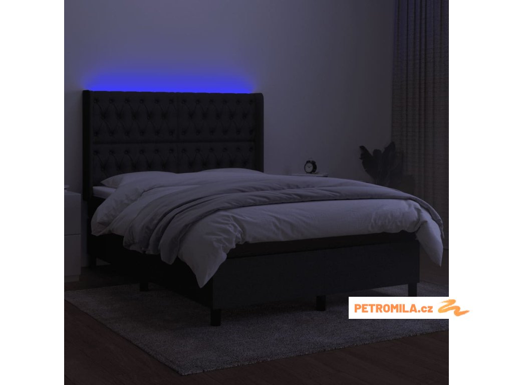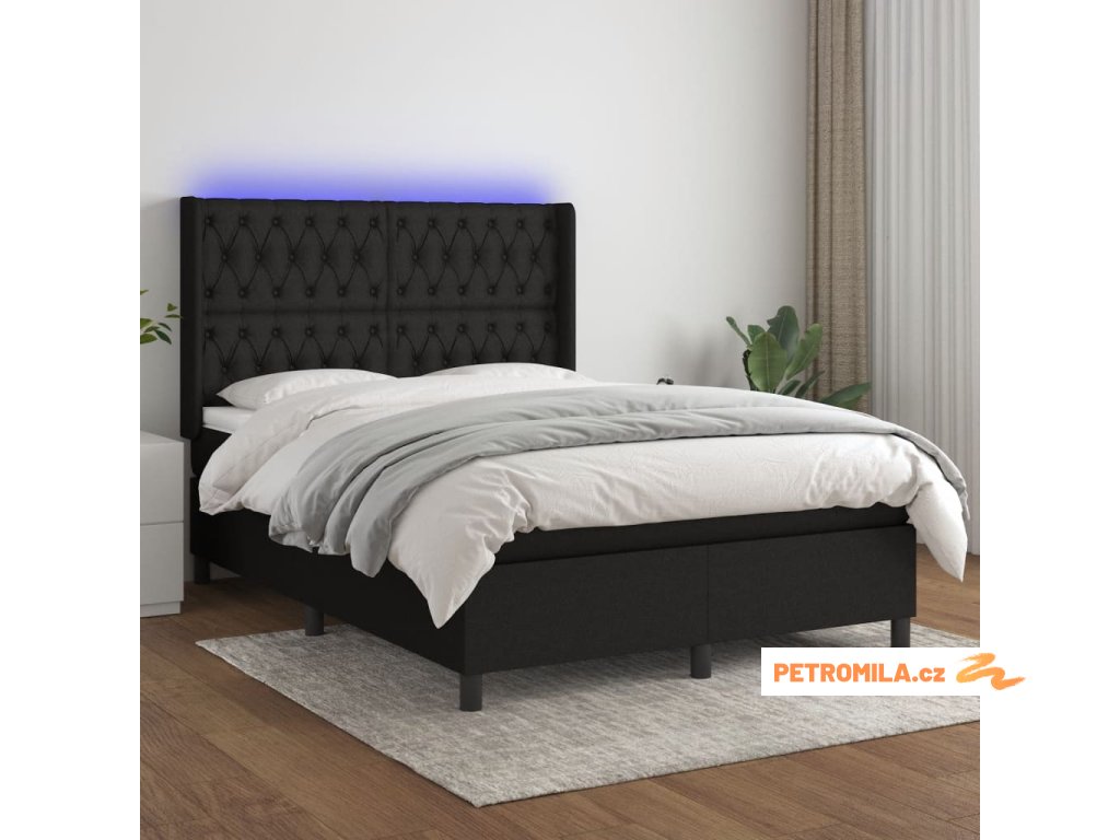 Box spring postel s matrací a LED černá 140x200 cm textil