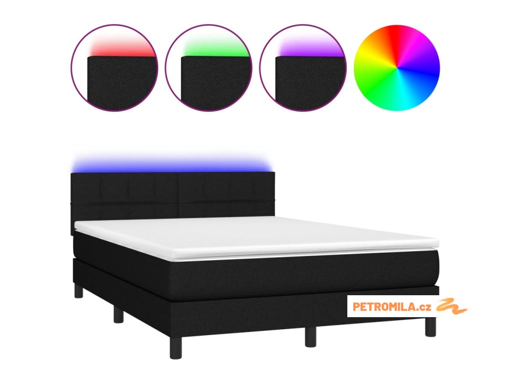 Box spring postel s matrací a LED černá 140x200 cm textil
