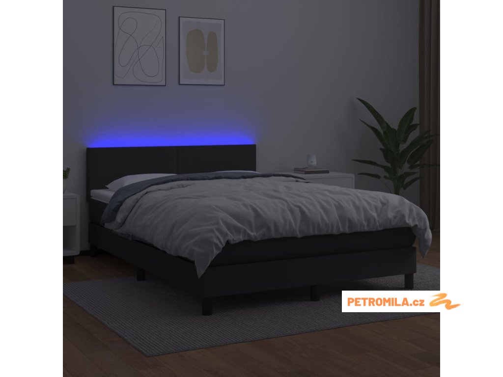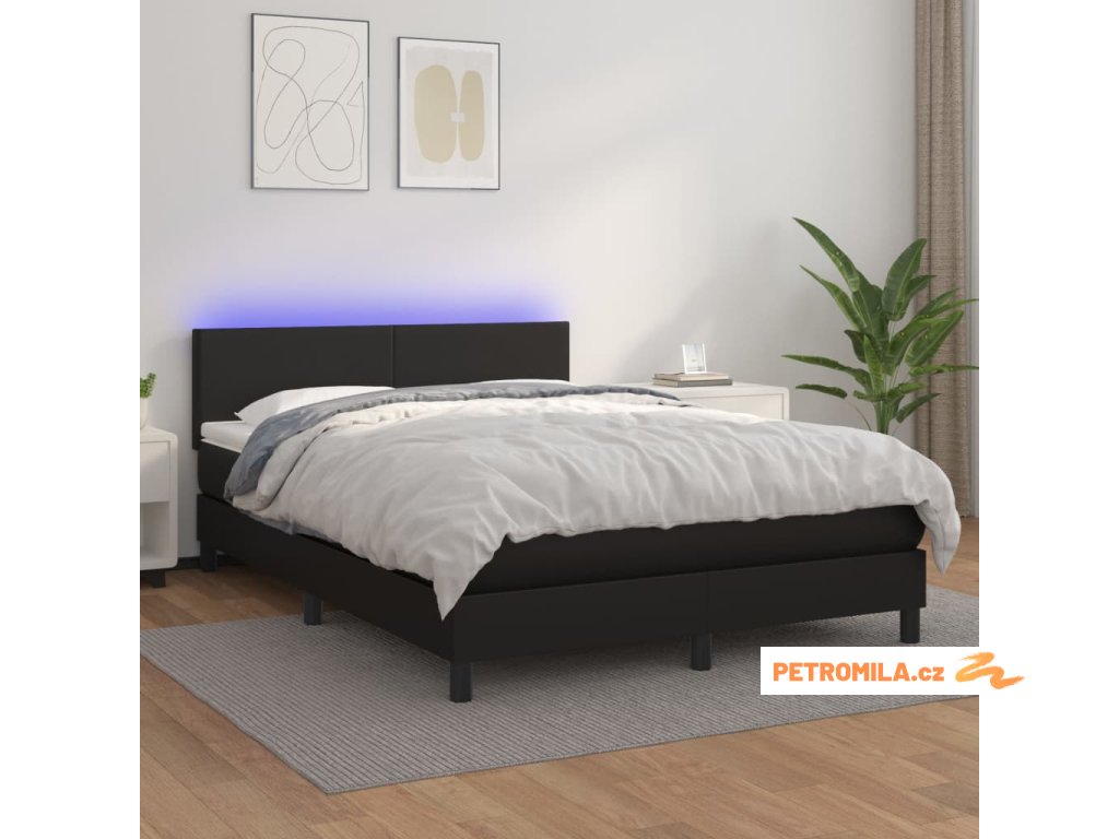 Box spring postel s matrací a LED černá 140x200 cm umělá kůže