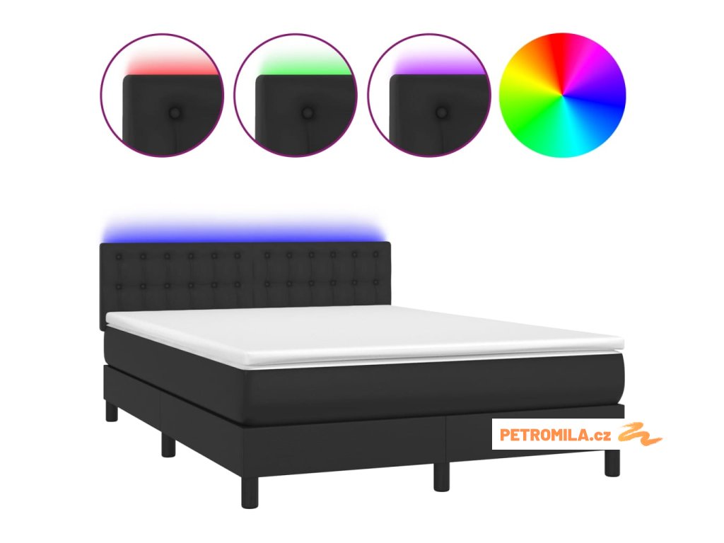 Box spring postel s matrací a LED černá 140x200 cm umělá kůže