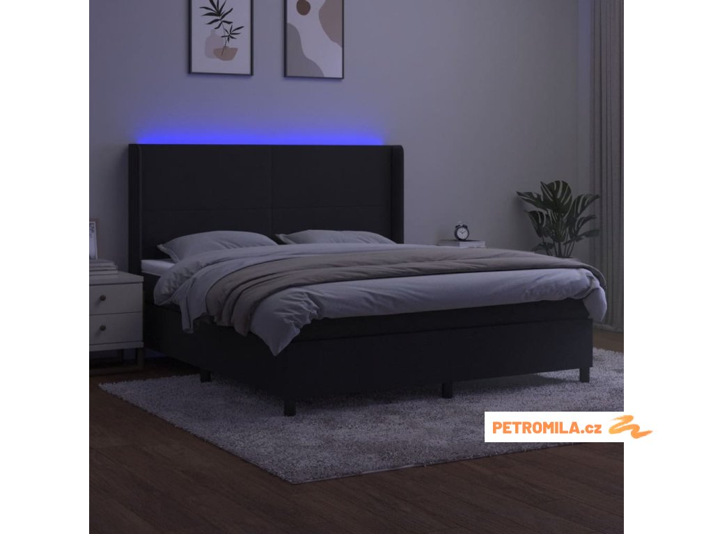 Box spring postel s matrací a LED černá 160x200 cm samet