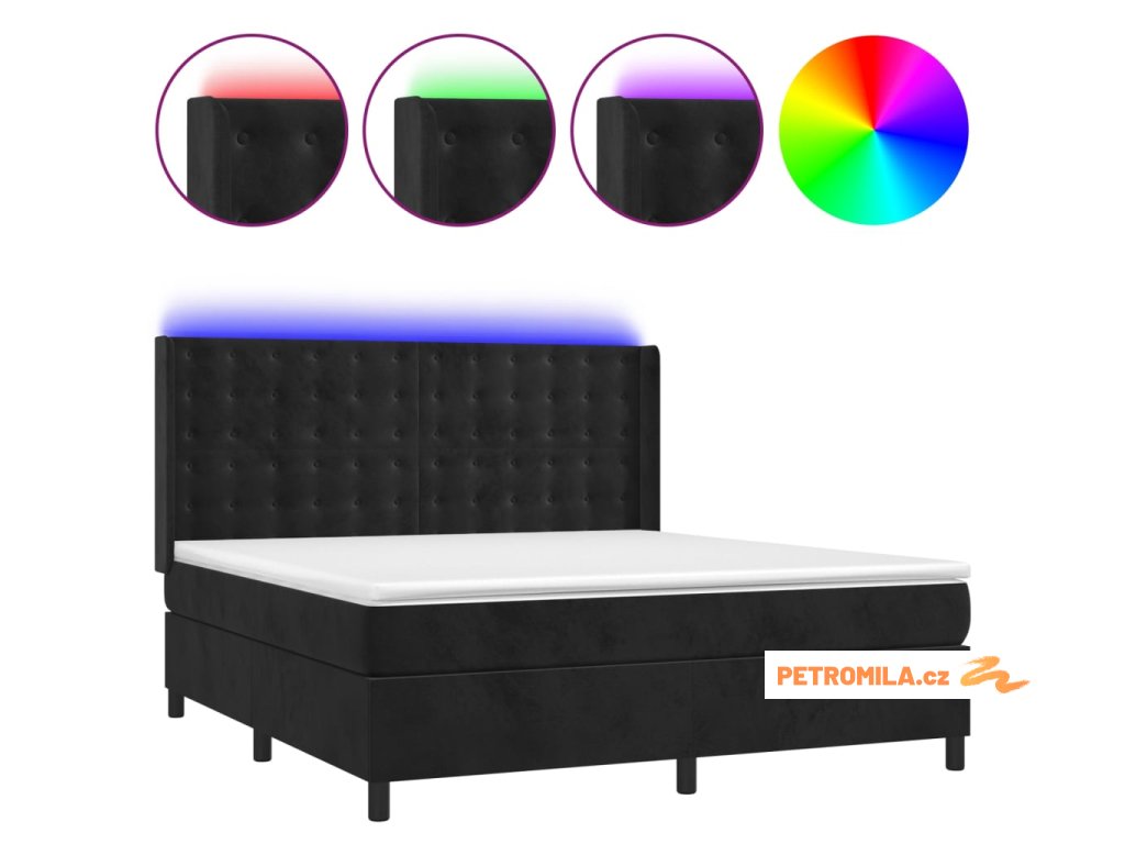 Box spring postel s matrací a LED černá 160x200 cm samet