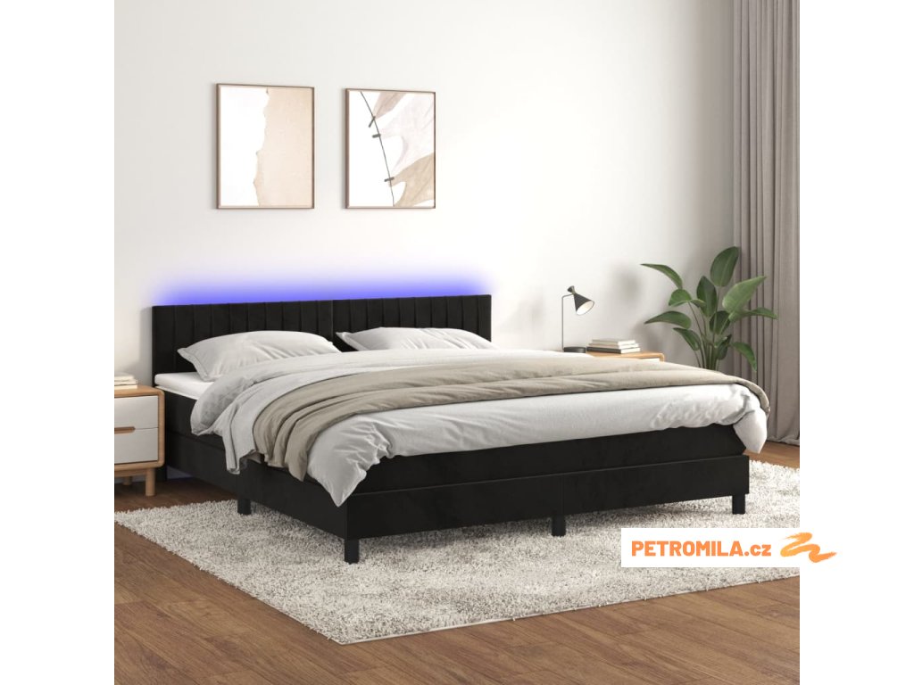 Box spring postel s matrací a LED černá 160x200 cm samet