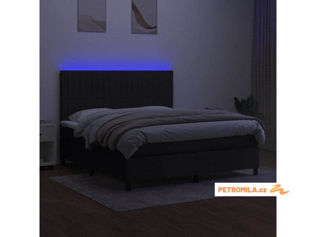 Box spring postel s matrací a LED černá 160x200 cm textil