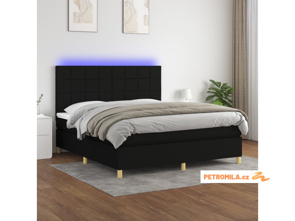 Box spring postel s matrací a LED černá 160x200 cm textil