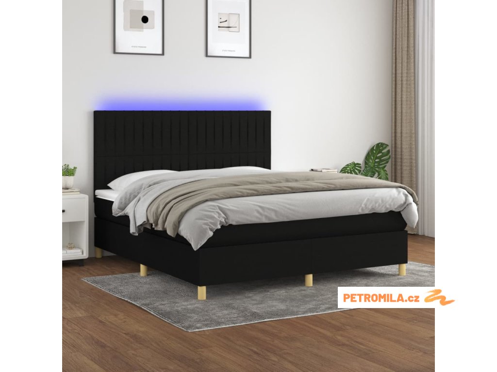Box spring postel s matrací a LED černá 160x200 cm textil
