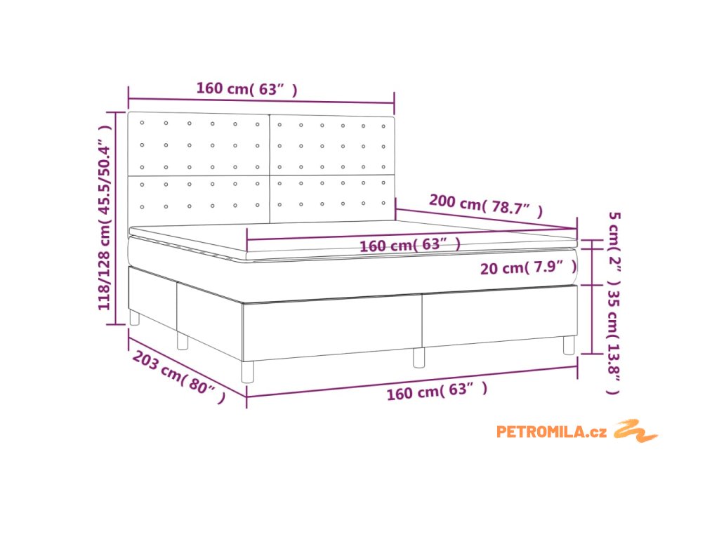 - Celkové rozměry: 203 x 160 x 118/128 cm (D x Š x V)