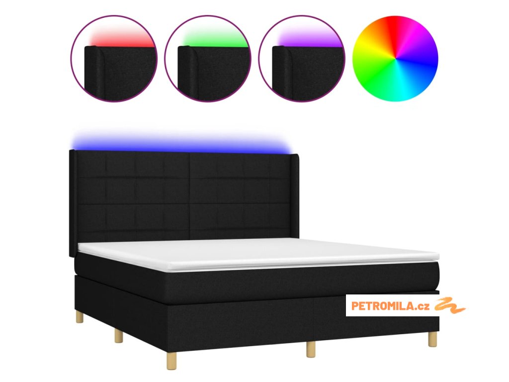 Box spring postel s matrací a LED černá 160x200 cm textil