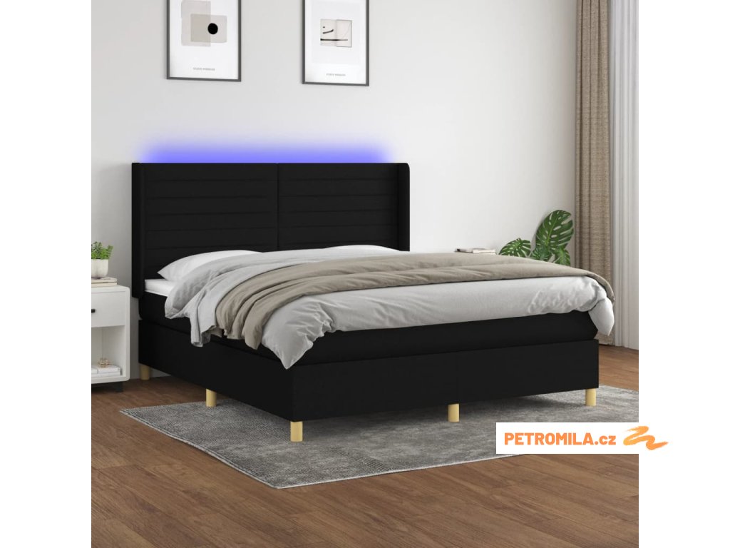 Box spring postel s matrací a LED černá 160x200 cm textil