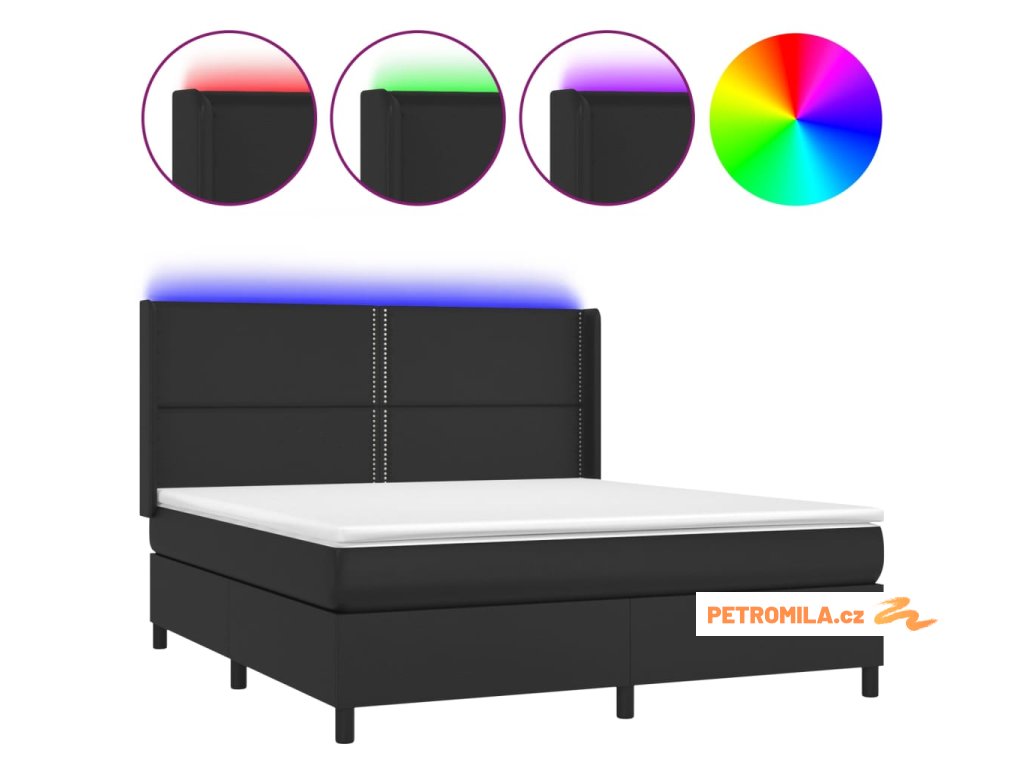 Box spring postel s matrací a LED černá 160x200 cm umělá kůže