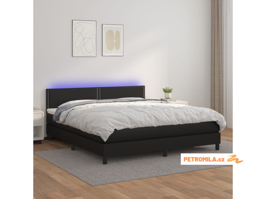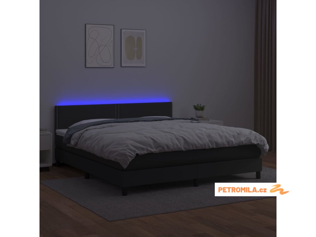 Box spring postel s matrací a LED černá 160x200 cm umělá kůže