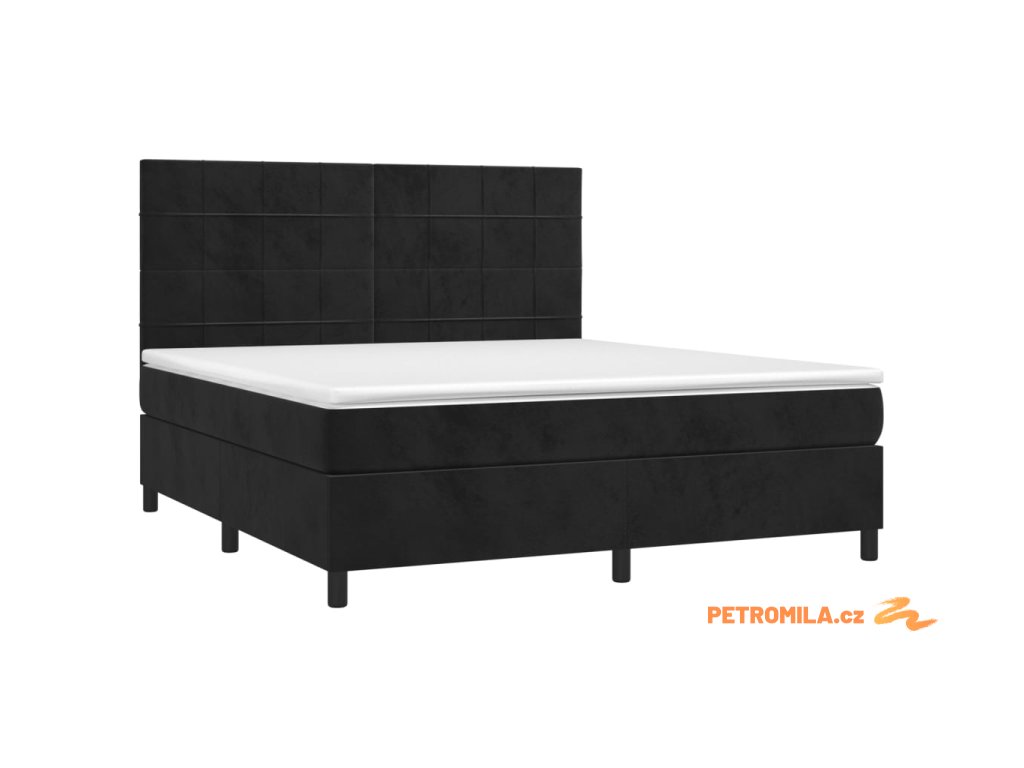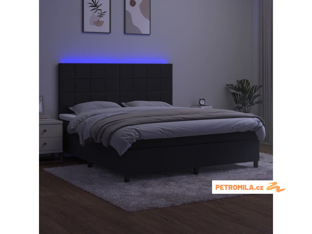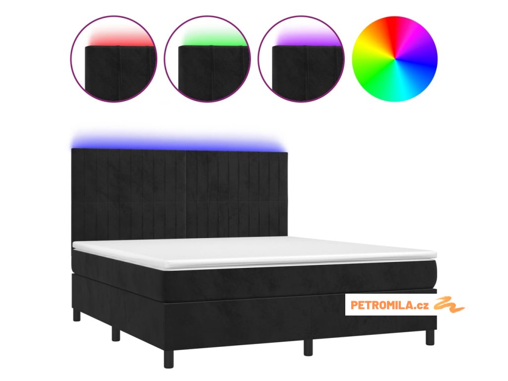 Box spring postel s matrací a LED černá 180x200 cm samet