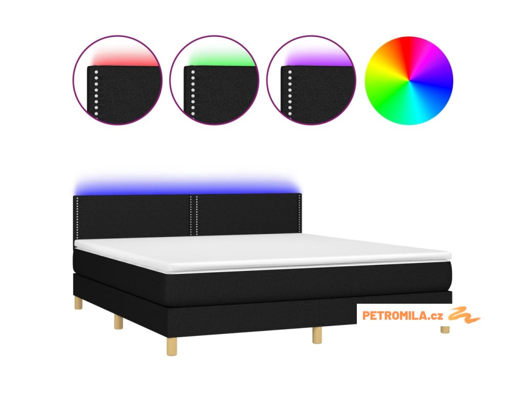 Box spring postel s matrací a LED černá 180x200 cm textil