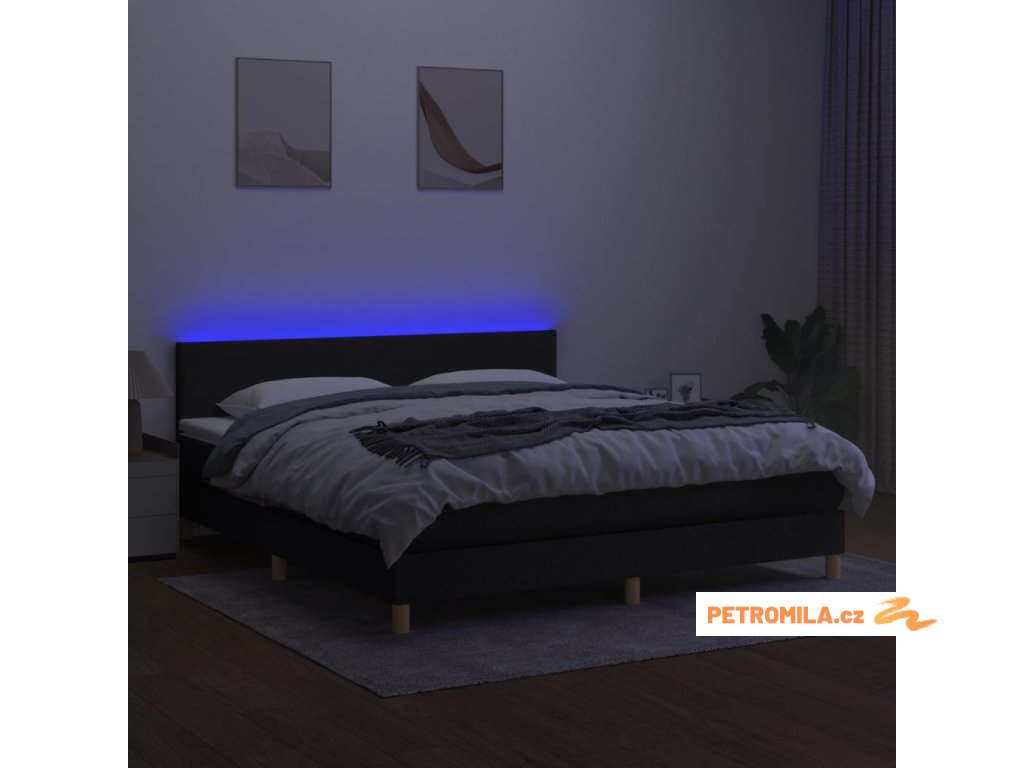 Box spring postel s matrací a LED černá 180x200 cm textil