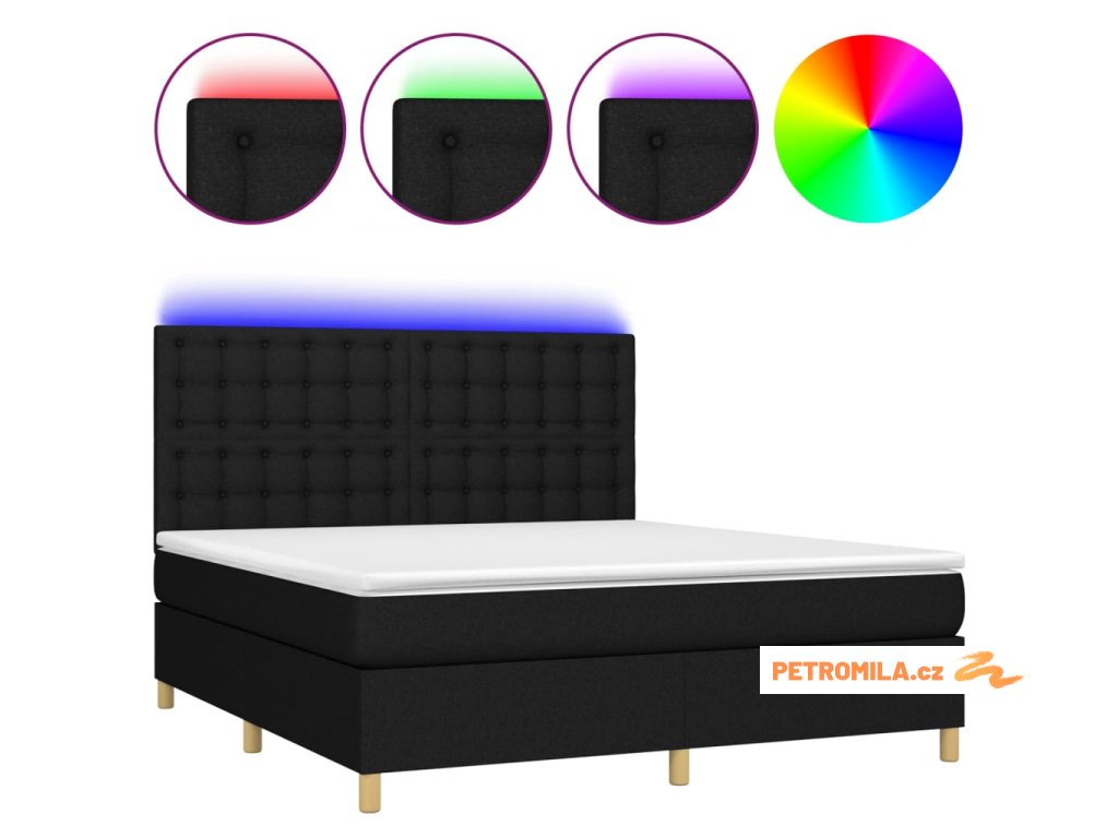 Box spring postel s matrací a LED černá 180x200 cm textil