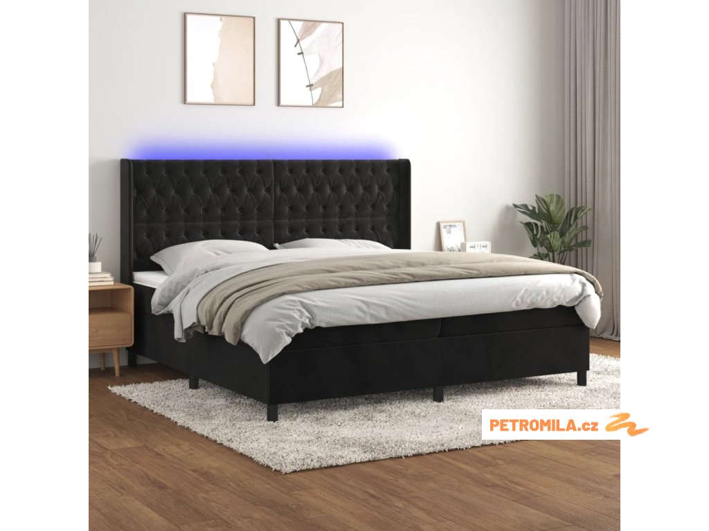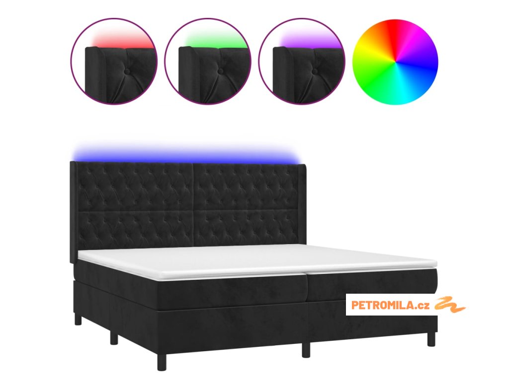 Box spring postel s matrací a LED černá 200x200 cm samet