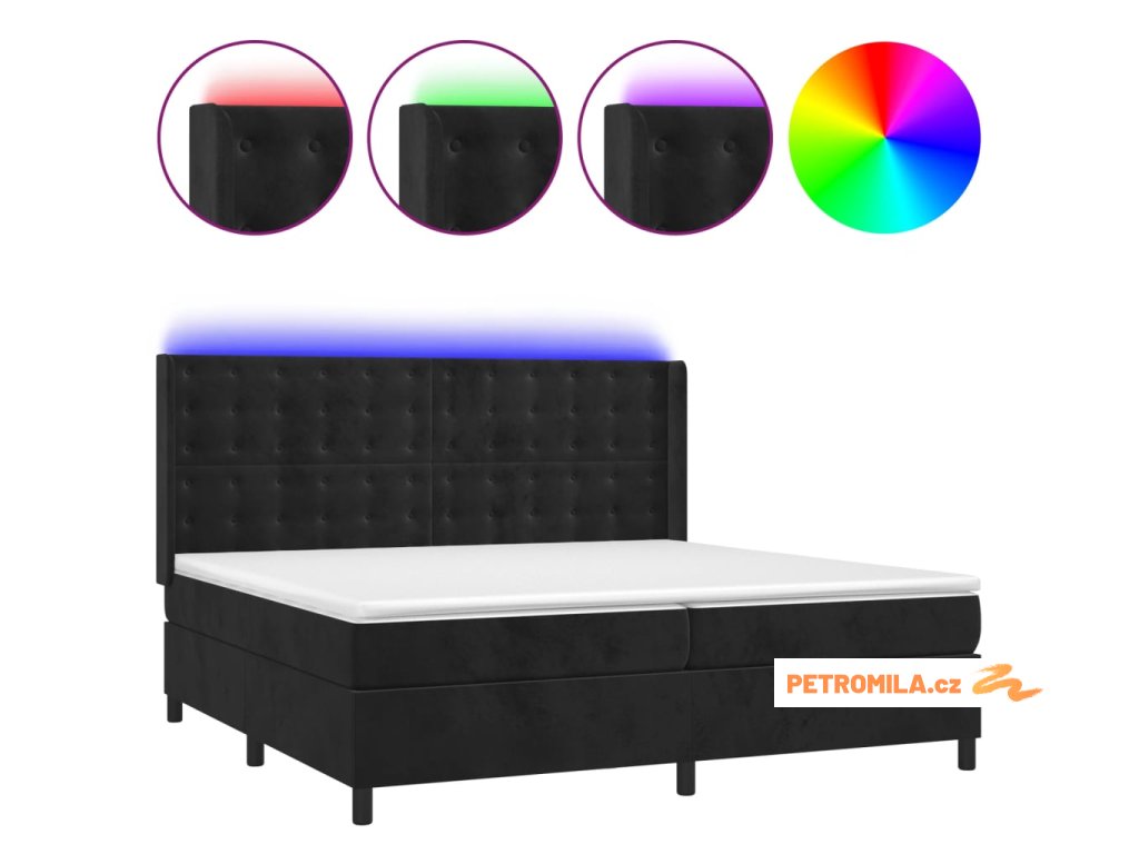 Box spring postel s matrací a LED černá 200x200 cm samet