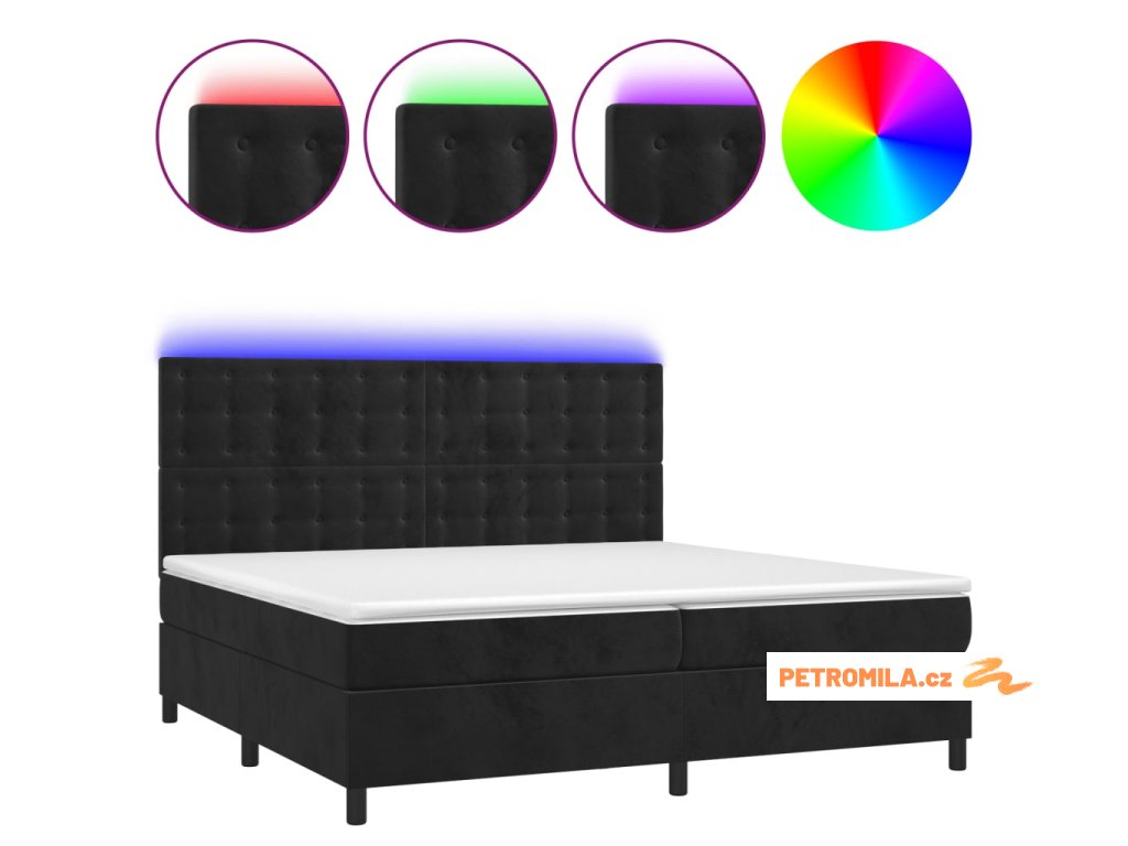 Box spring postel s matrací a LED černá 200x200 cm samet