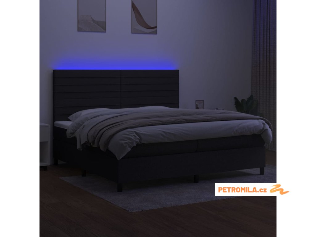 Box spring postel s matrací a LED černá 200x200 cm textil