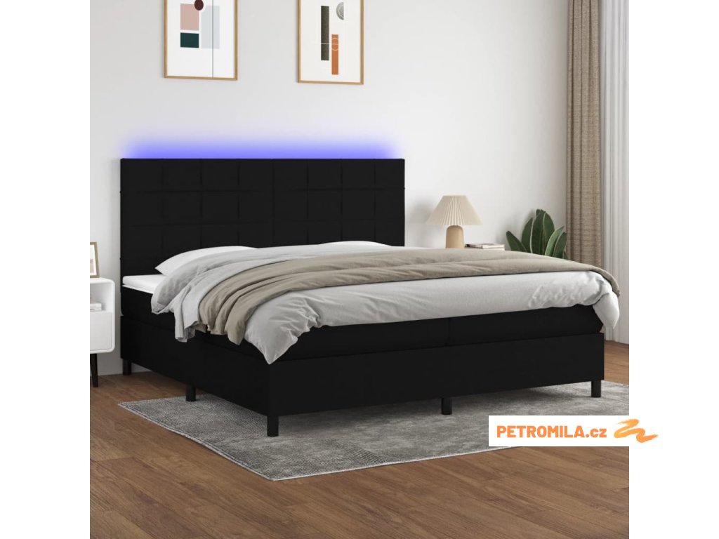 Box spring postel s matrací a LED černá 200x200 cm textil