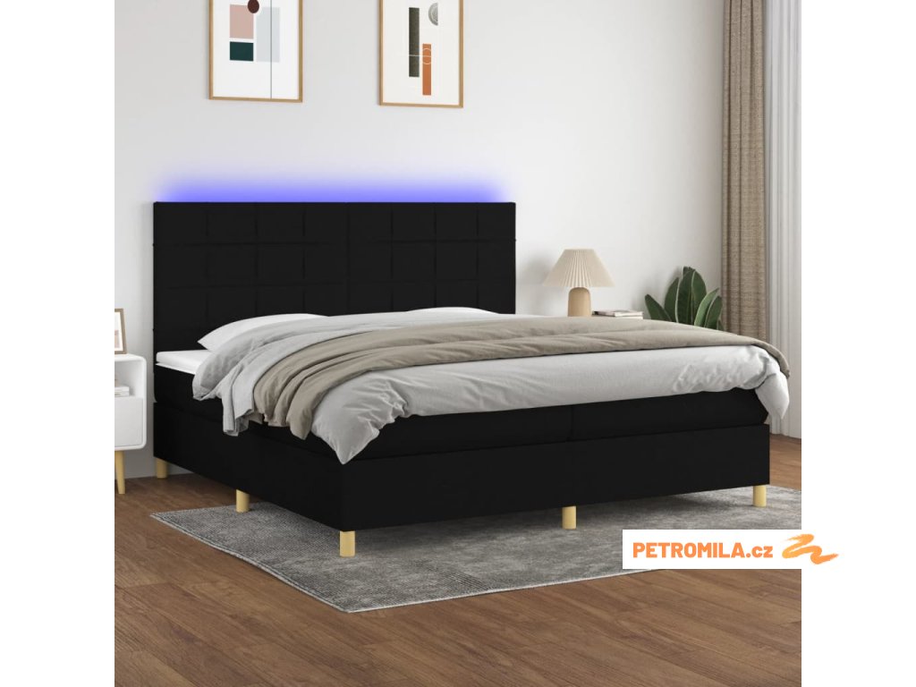Box spring postel s matrací a LED černá 200x200 cm textil