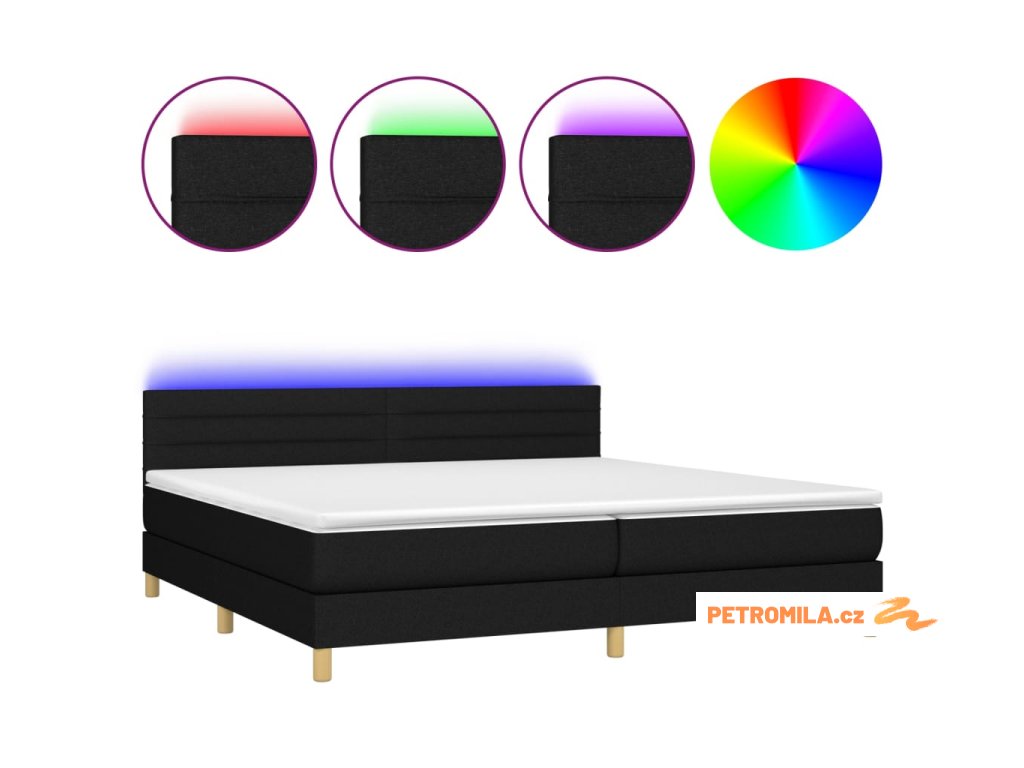 Box spring postel s matrací a LED černá 200x200 cm textil