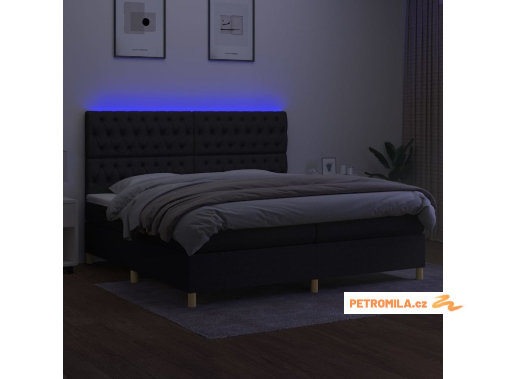 Box spring postel s matrací a LED černá 200x200 cm textil