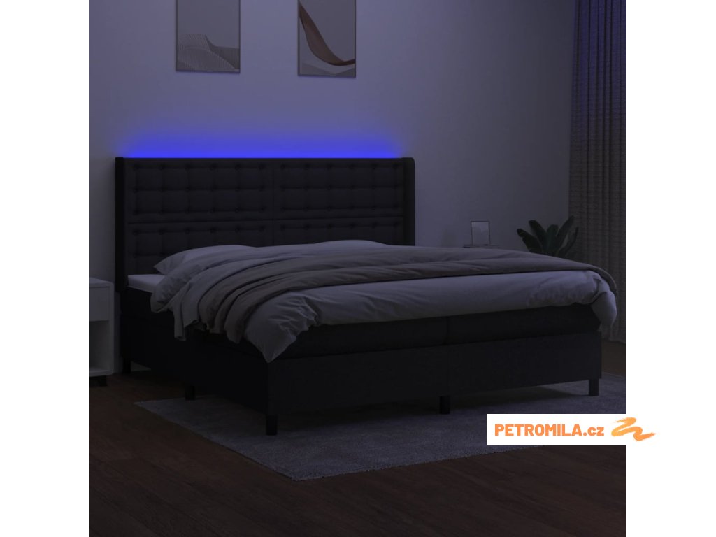 Box spring postel s matrací a LED černá 200x200 cm textil