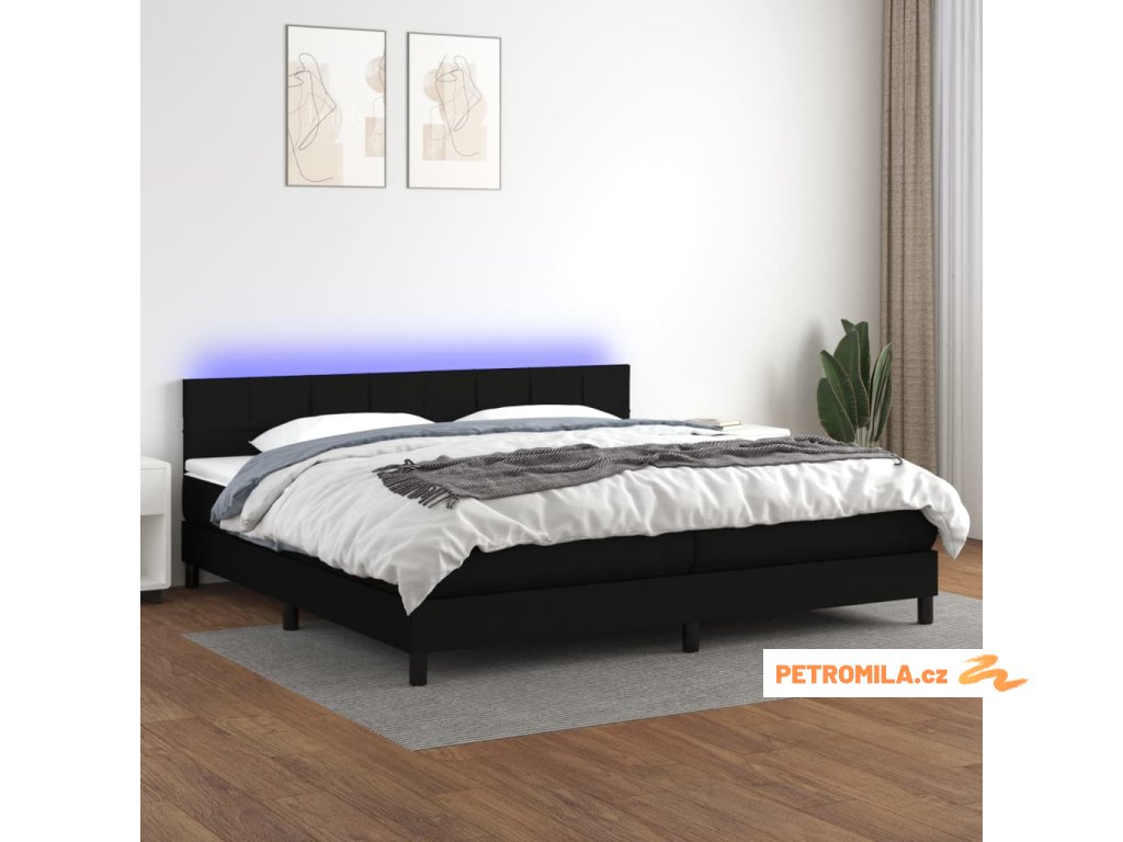 Box spring postel s matrací a LED černá 200x200 cm textil
