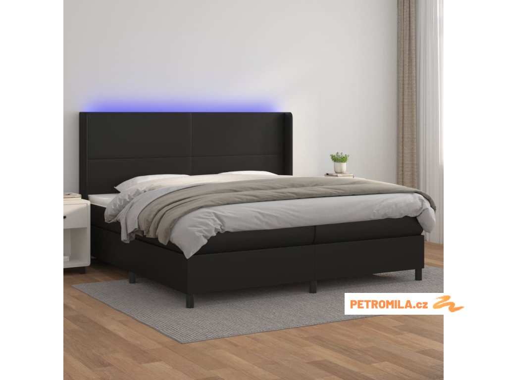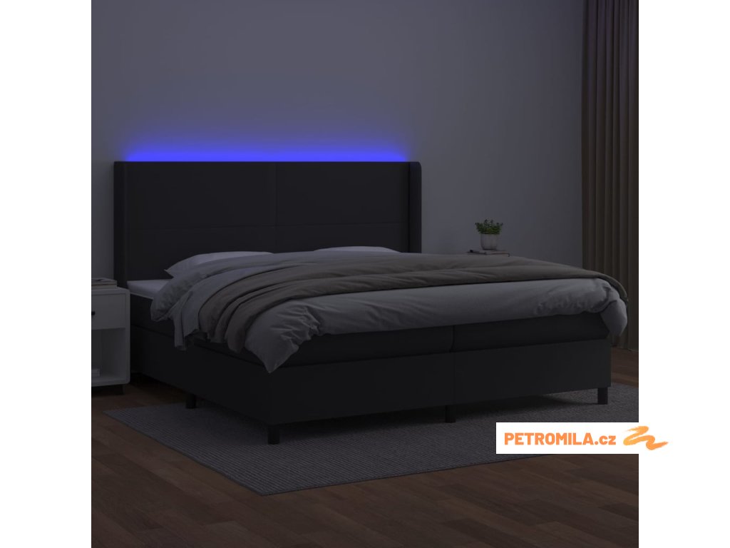Box spring postel s matrací a LED černá 200x200 cm umělá kůže
