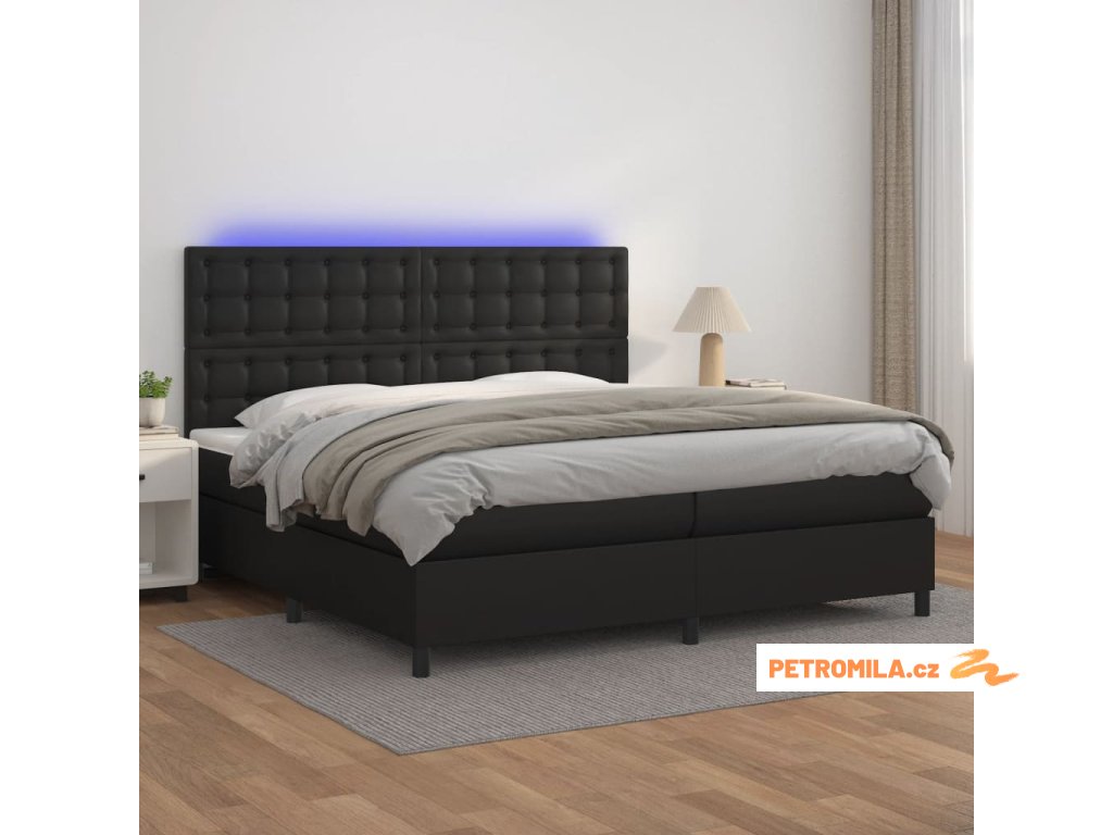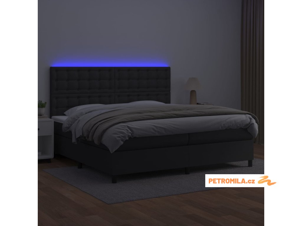 Box spring postel s matrací a LED černá 200x200 cm umělá kůže