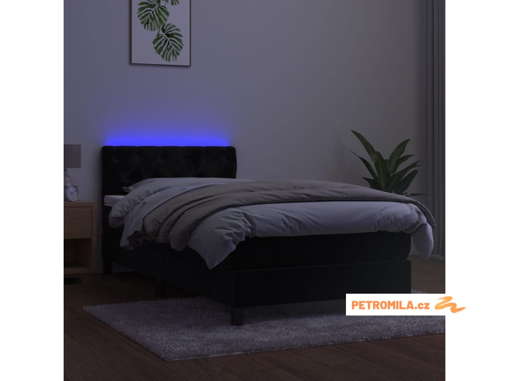 Box spring postel s matrací a LED černá 80 x 200 cm samet