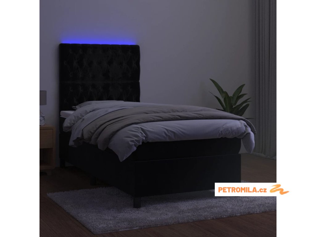 Box spring postel s matrací a LED černá 80 x 200 cm samet
