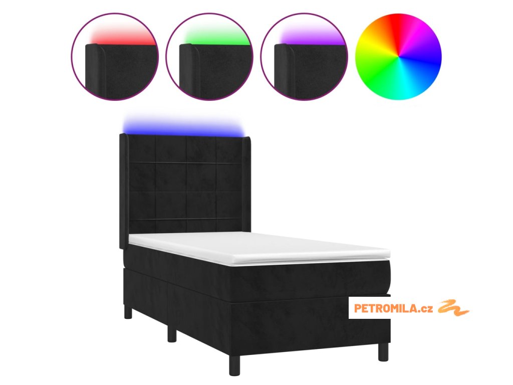 Box spring postel s matrací a LED černá 80 x 200 cm samet
