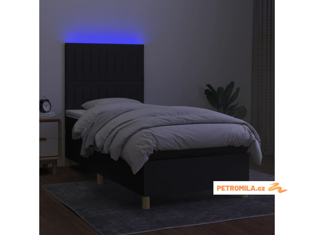 Box spring postel s matrací a LED černá 80 x 200 cm textil