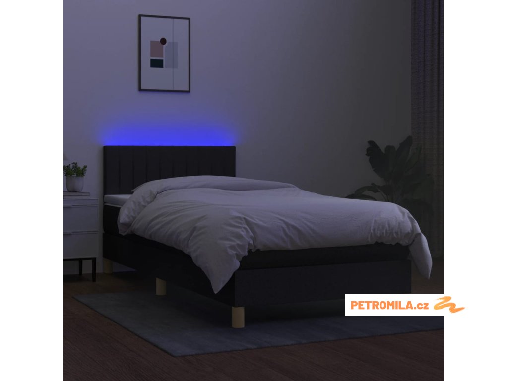 Box spring postel s matrací a LED černá 80 x 200 cm textil