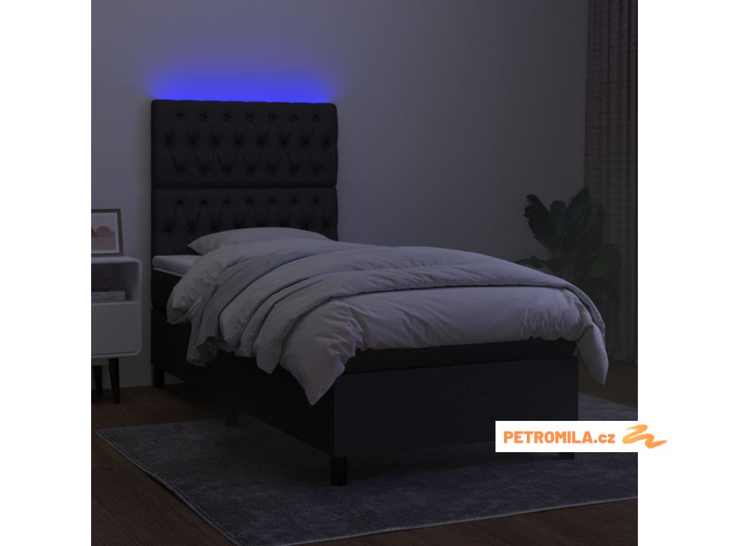 Box spring postel s matrací a LED černá 80 x 200 cm textil