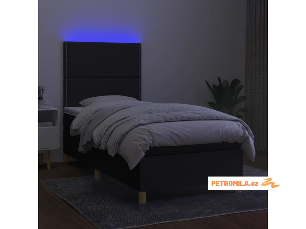 Box spring postel s matrací a LED černá 80 x 200 cm textil
