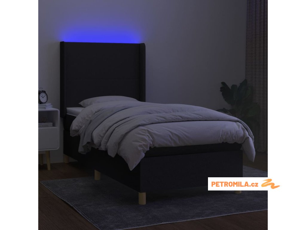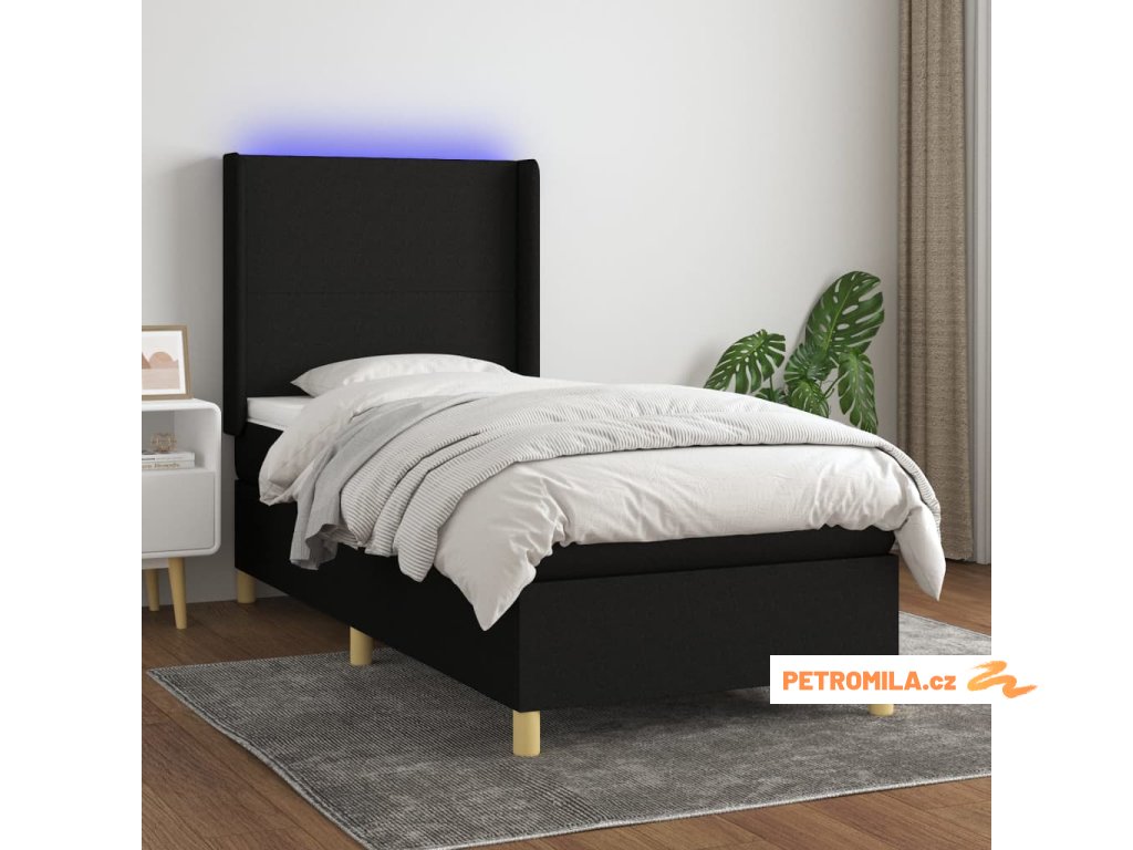 Box spring postel s matrací a LED černá 80 x 200 cm textil