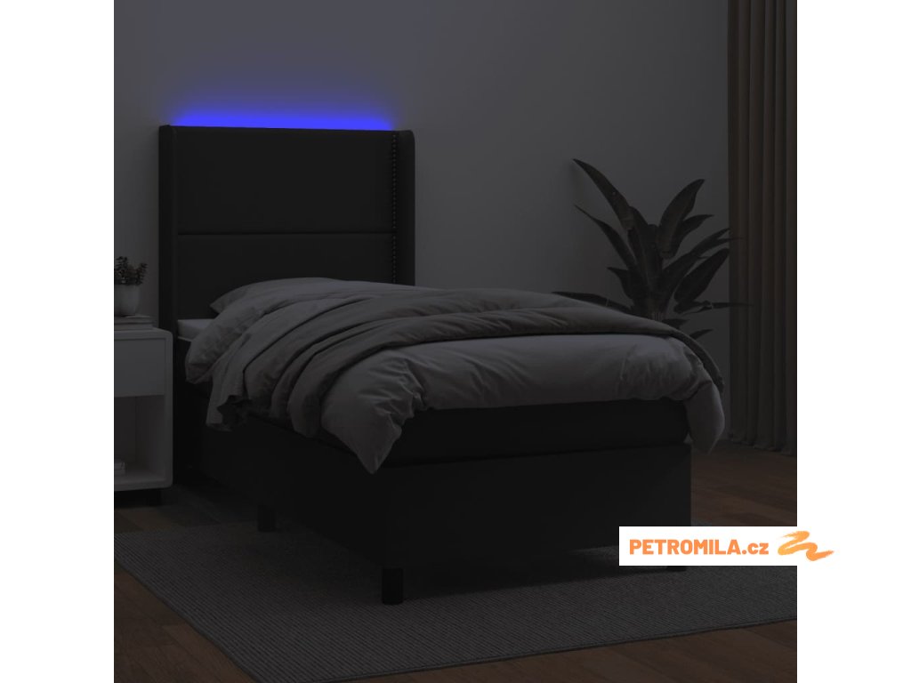 Box spring postel s matrací a LED černá 80 x 200 cm umělá kůže