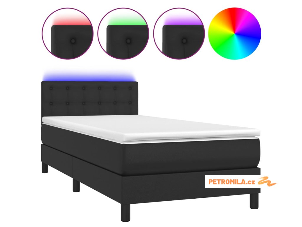 Box spring postel s matrací a LED černá 80 x 200 cm umělá kůže