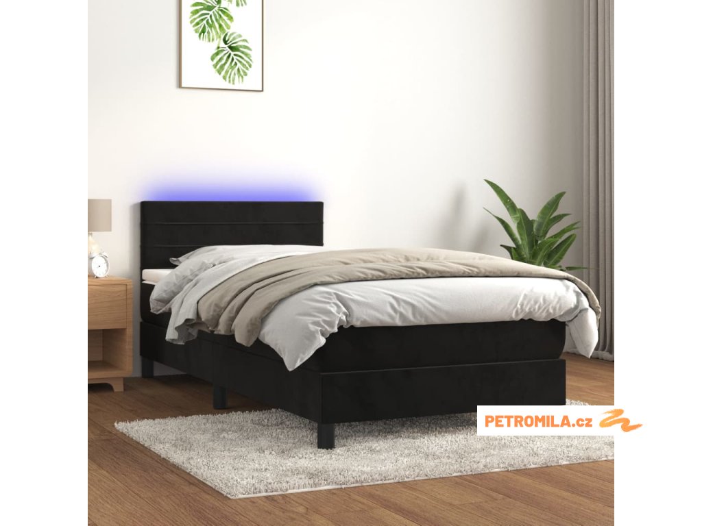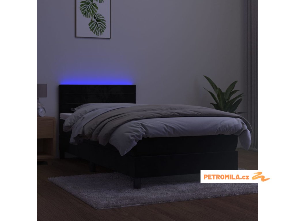 Box spring postel s matrací a LED černá 90x190 cm samet