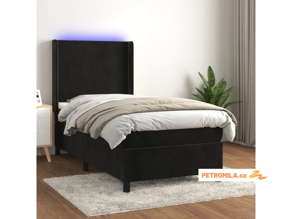 Box spring postel s matrací a LED černá 90x190 cm samet