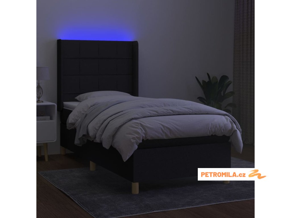 Box spring postel s matrací a LED černá 90x190 cm textil