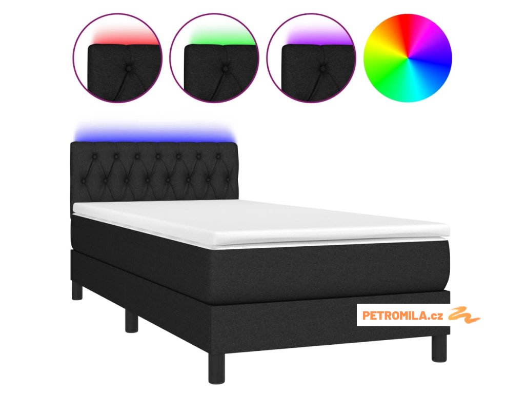 Box spring postel s matrací a LED černá 90x190 cm textil